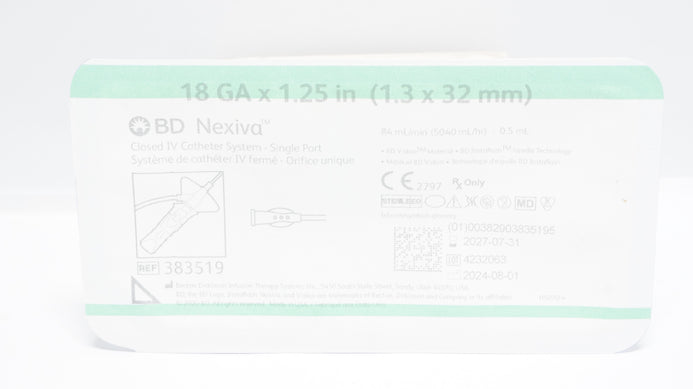 - BD 383519 Nexiva Closed IV Cath. System - Single Port 18Ga x 1.25inch 0.5mL