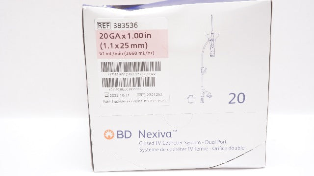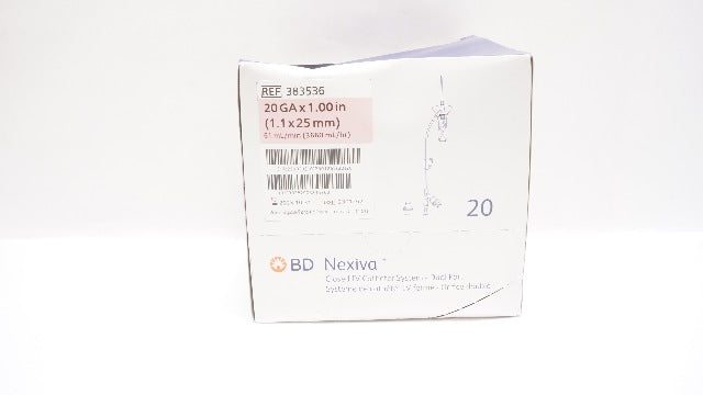 - BD 383536 Nexiva Closed IV Cath. System 20Ga x 1.00inch 61mL/min - Box of 16