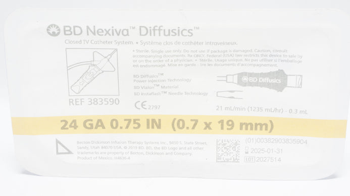 - BD 383590 Nexiva Diffusics Closed IV Cath. System 24GA x 0.75In (x)