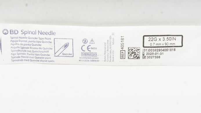 - BD 405081 Spinal Ndle Quincke Type Point 27G x 3.50inch