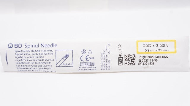 - BD 405182 Spinal Ndle Quincke Type Point 20Ga x 3.50 inch