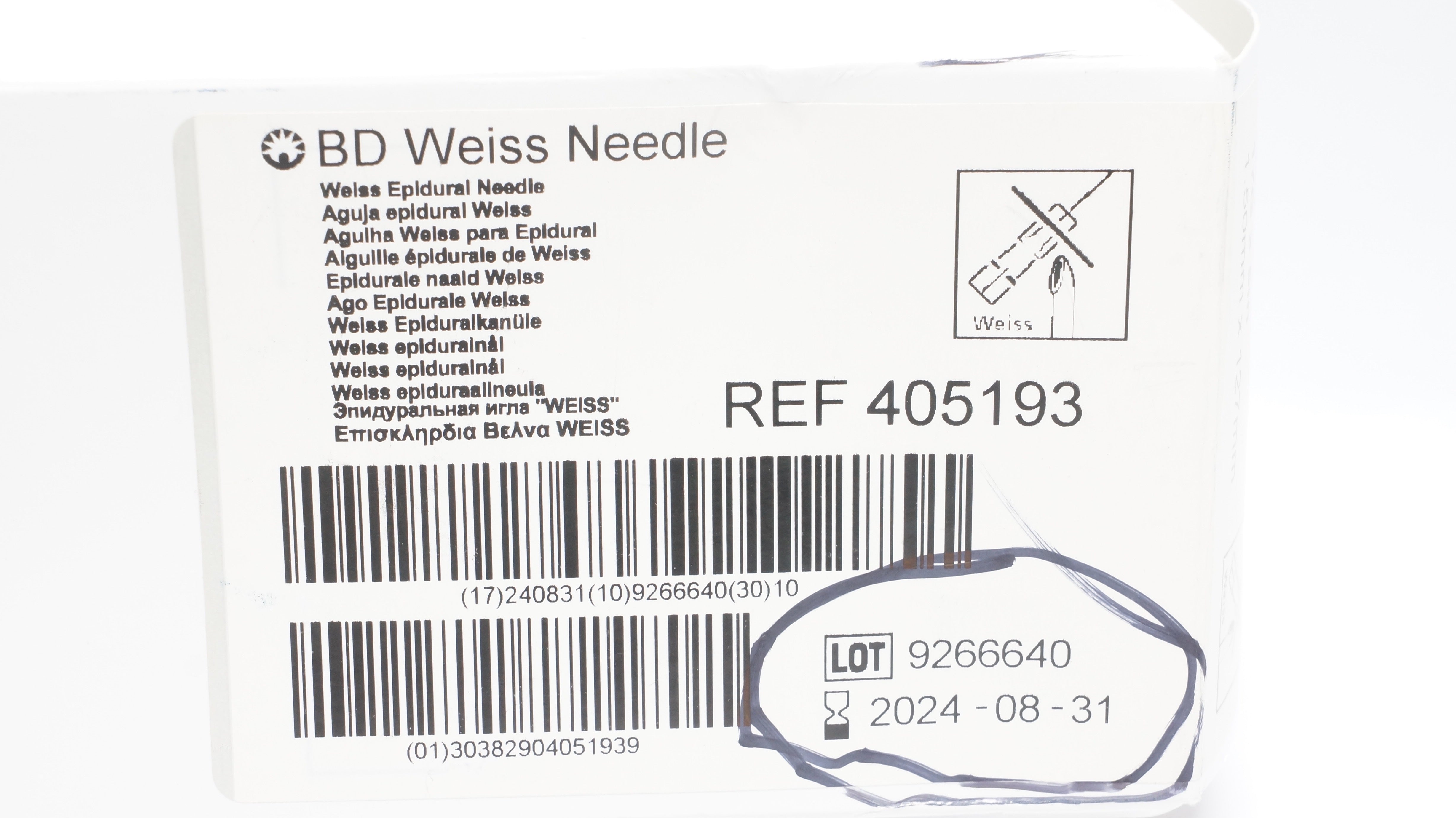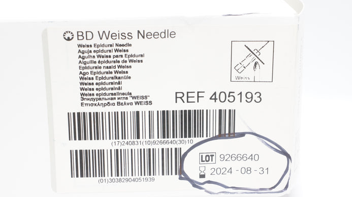 - BD 405193 Ndles, Weiss Epidural Ndle. 17GA x 5in (x) - Box of 10
