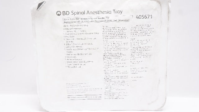 BD 405671 Spinal Anesthesia Tray 25G x 3.5inch Whitacre Spinal Needle,TW Bupivacaine HCl 0.75% with Dextrose 8.25%, 2mL