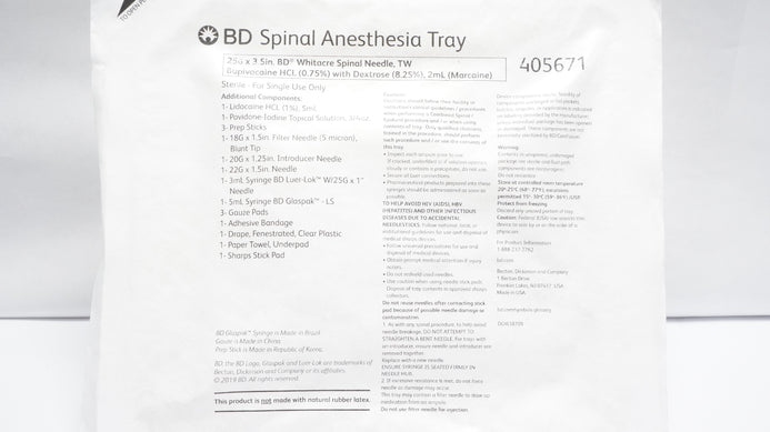 - BD 405671 Spinal Anesthesia Tray 25G x 3.5inch Spinal Ndle (x)