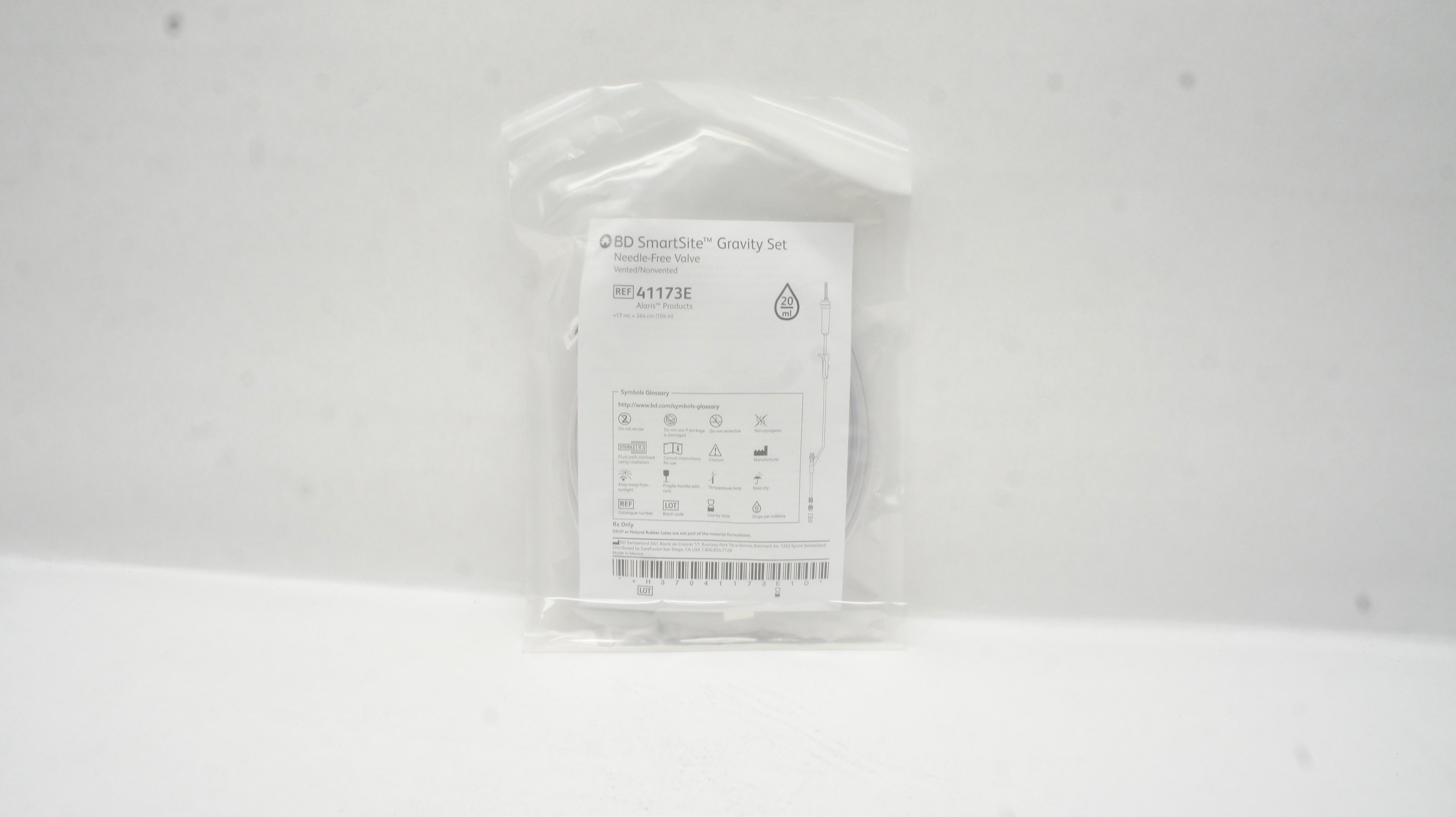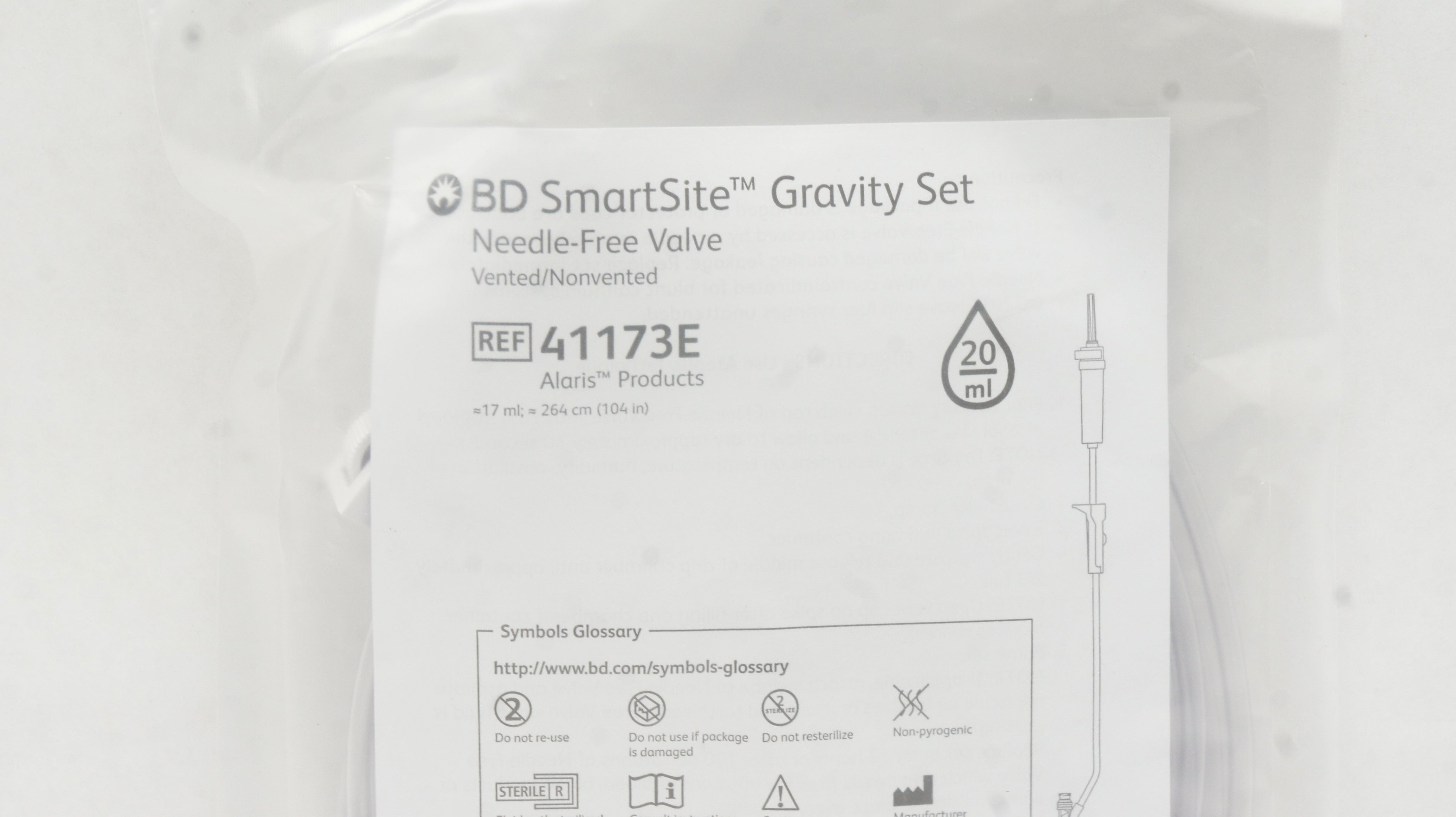 - BD 41173E Alaris SmartSite Gravity Set Ndle-Free Valve 17mL x 104inch 20drops/ml