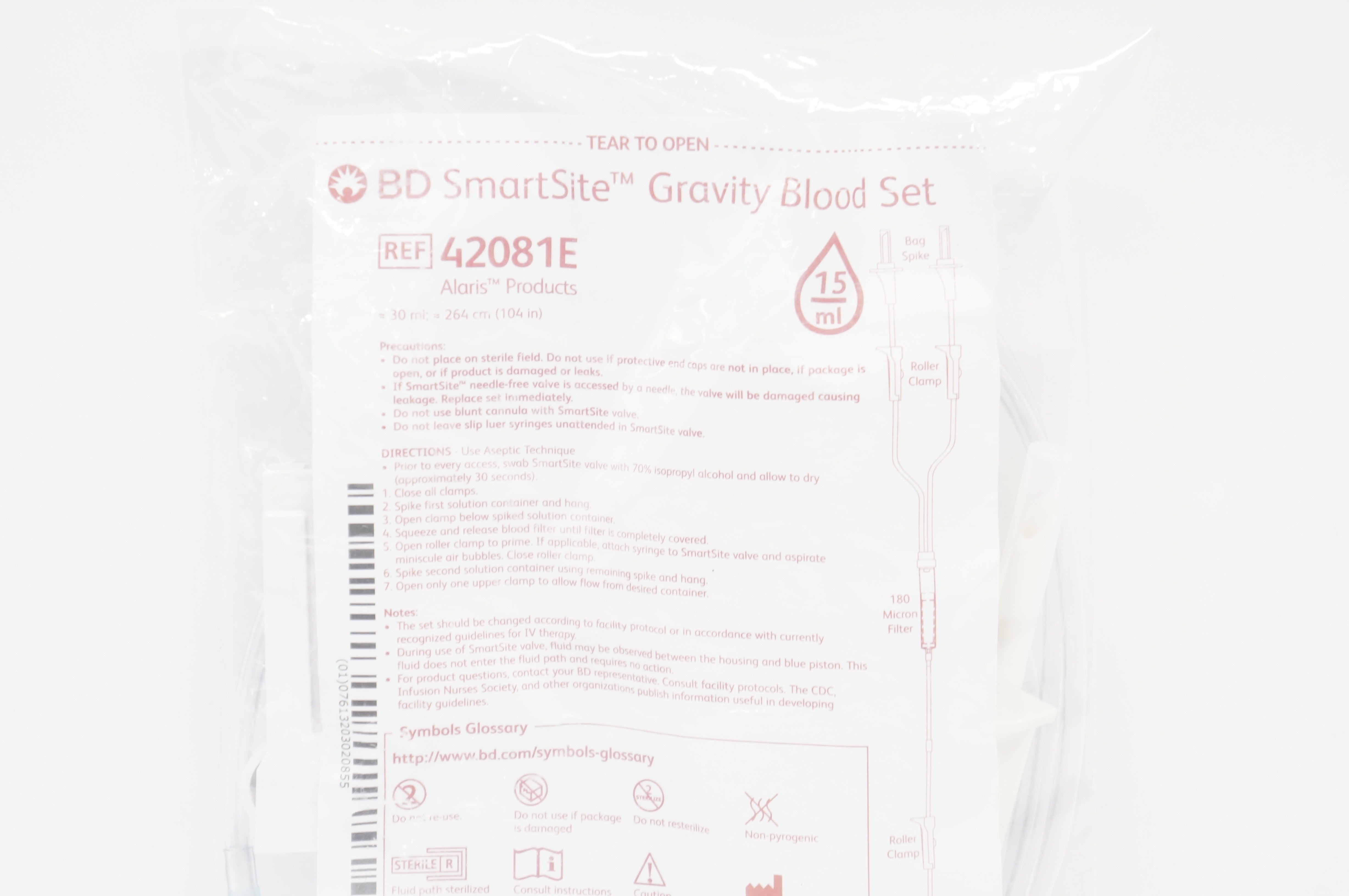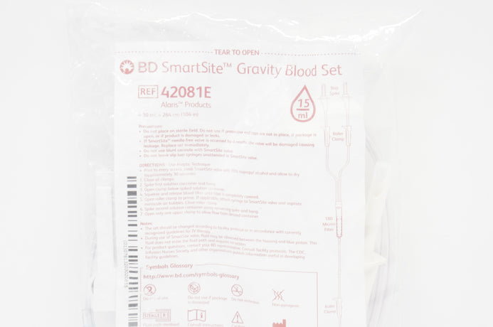 - BD 42081E Alaris SmartSite Gravity Blood Set 15Drops/mL, 30ml x 104inch (x)