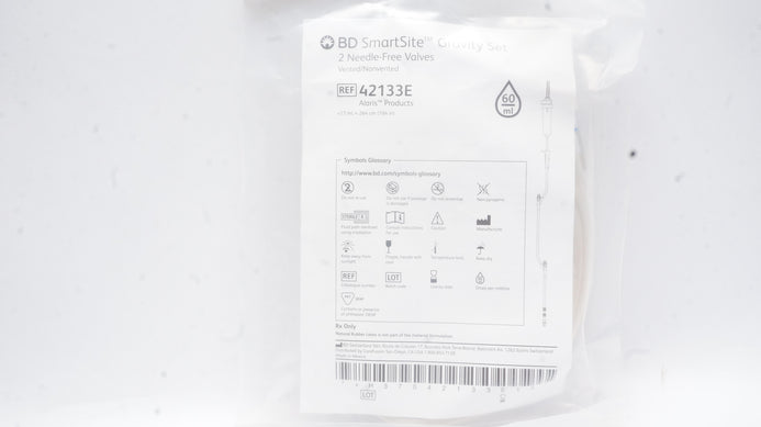 - BD 42133E SmartSide Gravity Set 2 Needle-Free Valves 17ml x 104inch 60Drops/mL