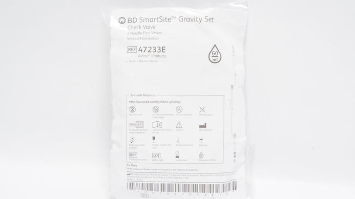 - BD 47233E SmartSite Gravity Set Check Valve 104inch x 18mL, 60 drops/mL