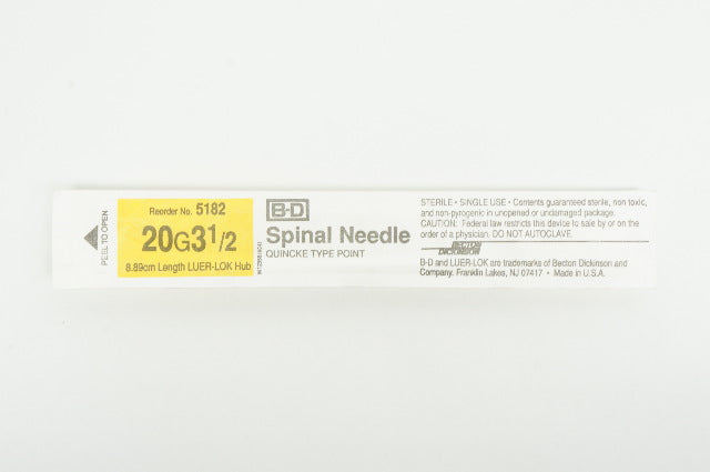 - BD 5182 Spinal Ndle Quincke Type Point 20G x 3-1/2inch, 8.89 Length Luer-Lok Hub