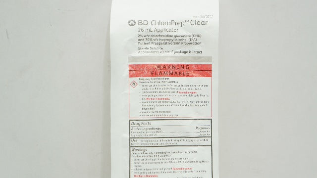 BD 930800 ChloraPrep Clear 26 mL Applicator Patient Preoperative Skin Preparation Solution Sterile 2% / 70% Strength CHG (Chlorhexidine Gluconate) / Isopropyl Alcohol