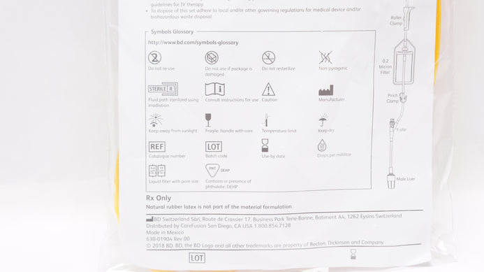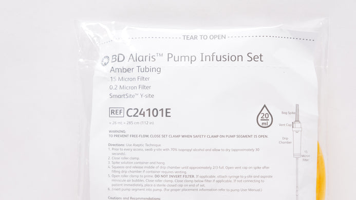 BD C24101E Alaris Pump Infusion Set Amber Tubing 15Micron Filter 0.2Micron Filter Smart Site Y-Site 26mL x 112inch 20Drops/ml
