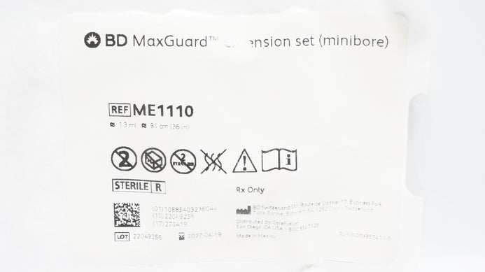 - BD ME1110 MaxGuard Extension Set (Minibore) 1.3mL x 36inch (Approx.)