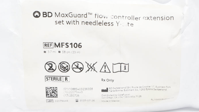 - BD MFS106 MaxGuard Flow Controller Extension Set w/ Needleless Y-site 23inch (x)