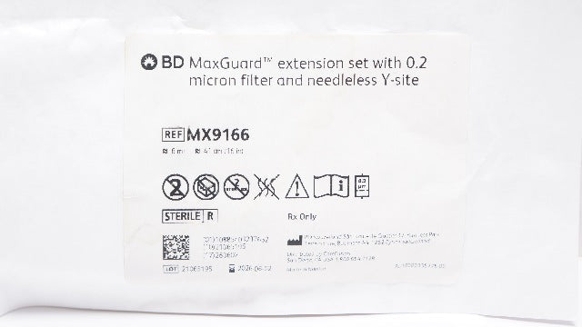 - BD MX9166 MaXGuard Extension Set w/0.2Micron Filter & Ndleless Y-Site 6mlx16inch