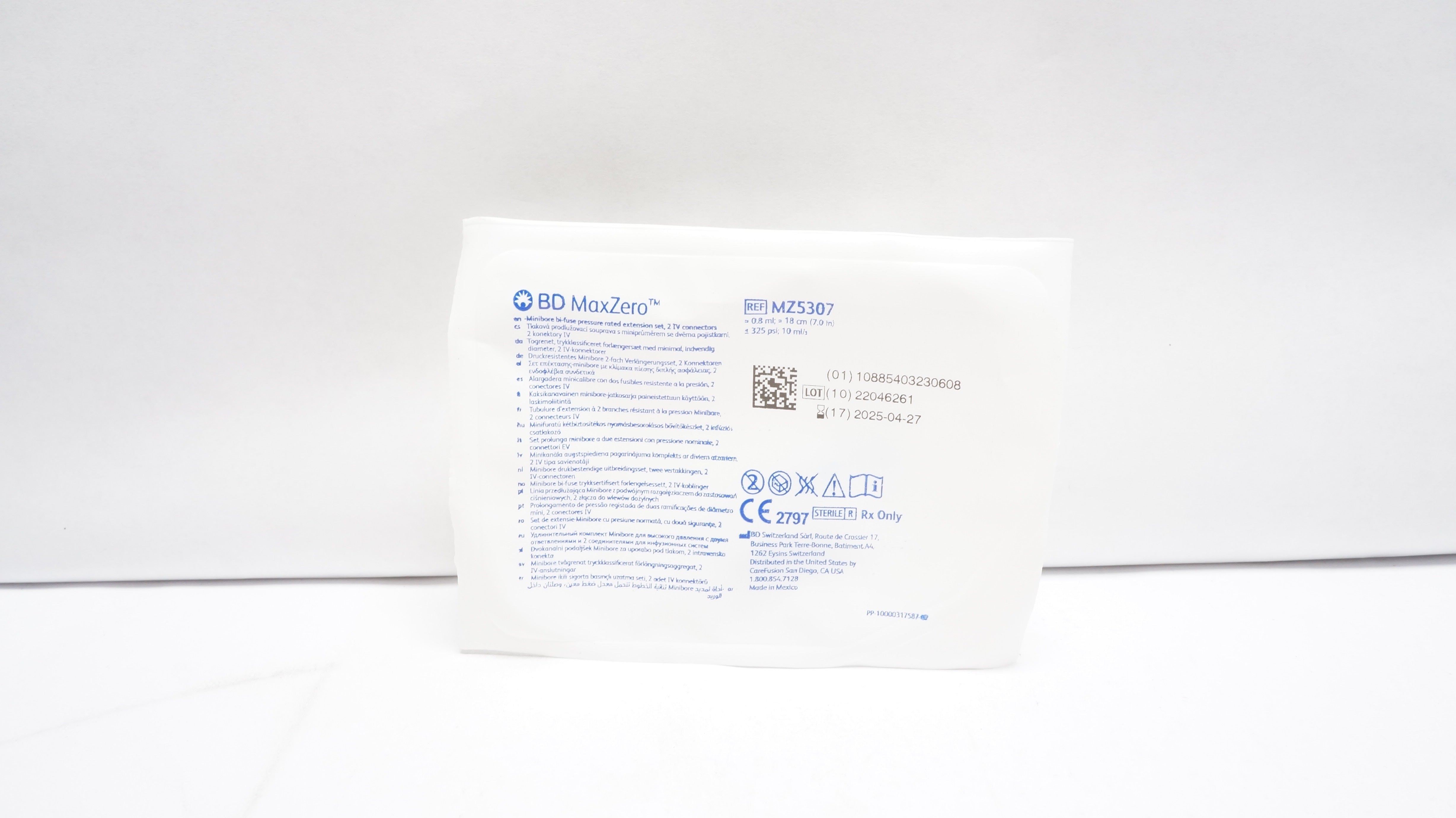 - BD MZ5307 MaxZero Microbore Bi-Fuse Extension Set 2 IV Connectors 7inchx0.8ml(x)