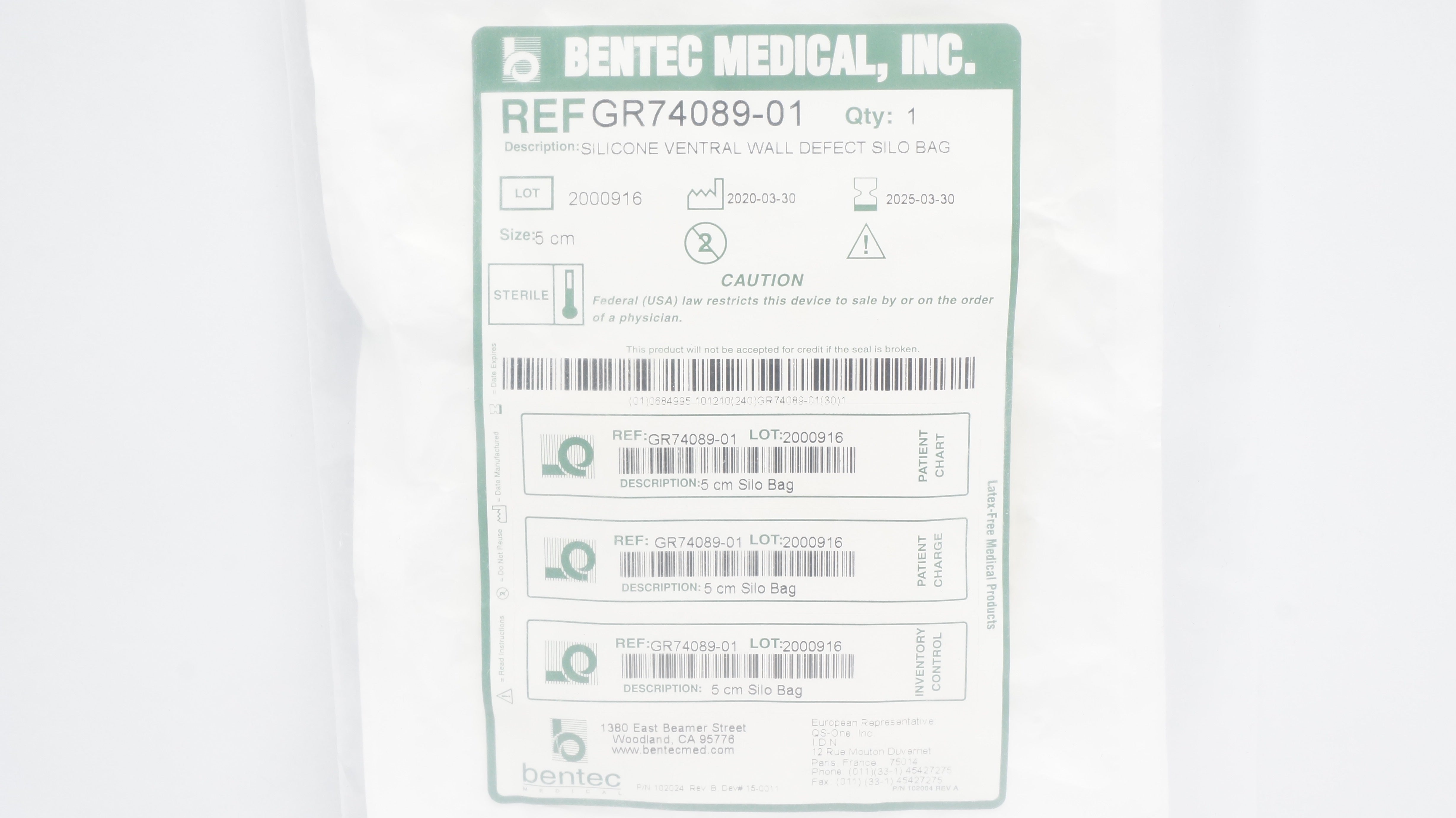 - Bentec Medical GR74089-01 Silicone Ventral Wall Defect Reduction SILO Bag 5cm(x)