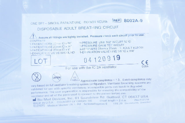 - Bio-Med 8002A-9 Disposable Adult Breathing Circuit