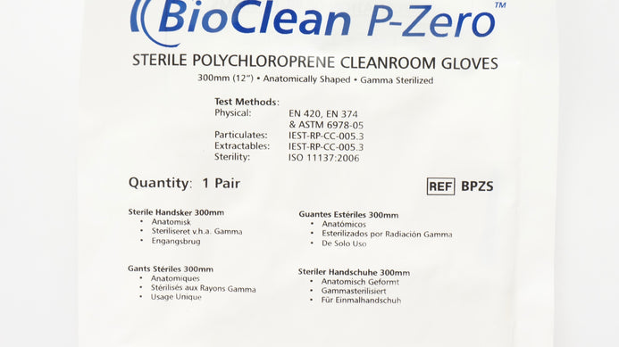 - BioClean BPZS P-Zero Cleanroom Gloves, Polychloroprene, Sterile 12inch(x)