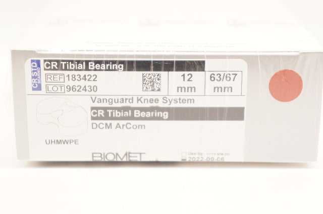 - Biomet 183422 Vanguard Knee System DCM CR Tibial Bearing 12mm x 63/67mm (x)