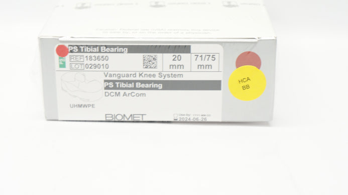 - Biomet 183650 Vanguard Knee System PS Tibial Bearing DCM ArCom 20 x 71/75mm (x)
