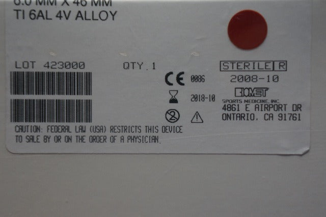 Biomet 908846 Washerloc Cancellous Screw 6.0mm x 46mm