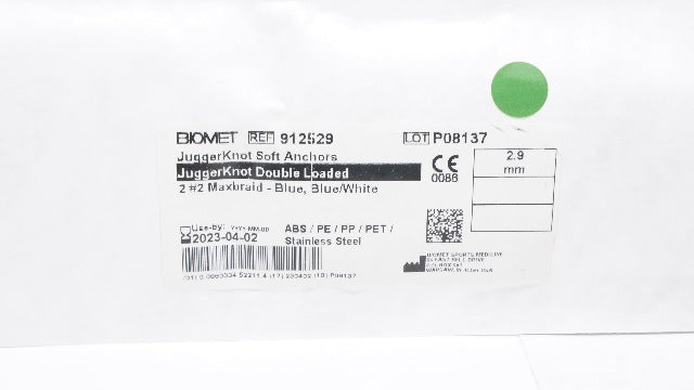 BIOMET 912529 JuggerKnot Soft Anchor 2.9mm Double Loaded #2 MaxBraid BL,BL/WH(x)