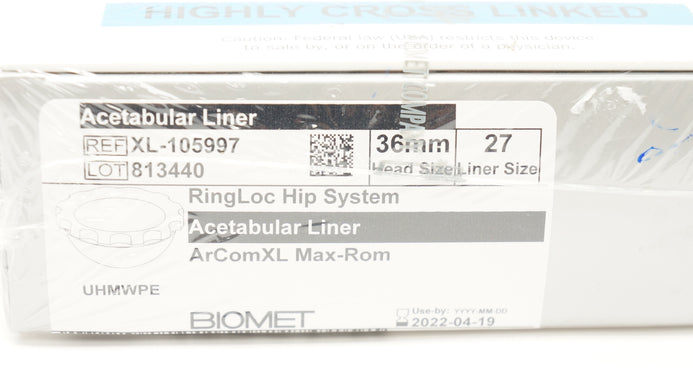 - Biomet XL-105997 Max-Rom Ringloc 36mm Acetabular Liner Size 27/Standard (x)