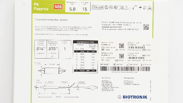 - Biotronik 434892 PK Papyrus Covered Coronary Stent System 5.0mm x 15mm (x)