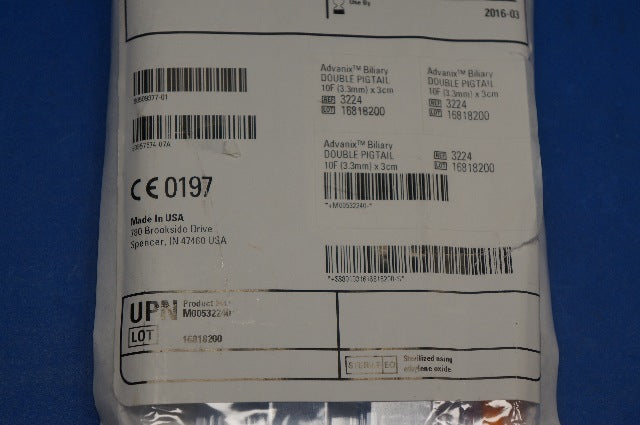 Boston Scientific 3224 Advanix Biliary Double Pigtail Biliary Stnt 10F x 3cm