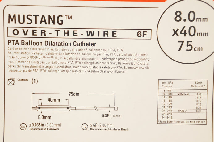 Boston Scientific 3917108047 Mustang PTA Balloon Dilatation Cath. 6F (x)