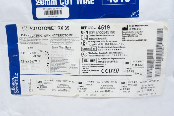 Boston Scientific 4519 Autotome RX 39 Short Nose 5mm, Cut Wire 20mm (x)