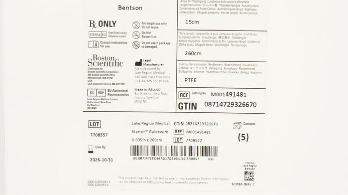 - Boston Scientific 49148 Starter Guidewire Bentson 0.035in x 260cm - Box of 5