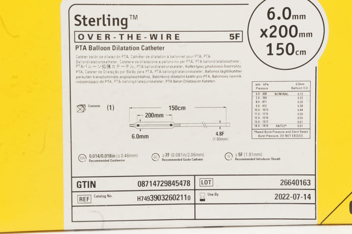 - Boston Scientific H74939032602110 PTA Balloon Dilatation Cath. 6.0x200mmx150cm