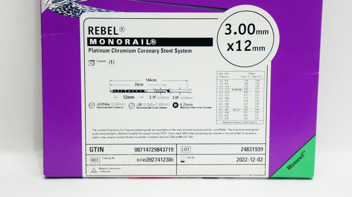 - Boston Scientific H7493927412300 Rebel Coronary Stnt System 3.00mm x 12mm (x)
