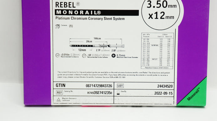 Boston Scientific H7493927412350 Rebel Monorail Stnt System 3.50mm x 12mm (x)