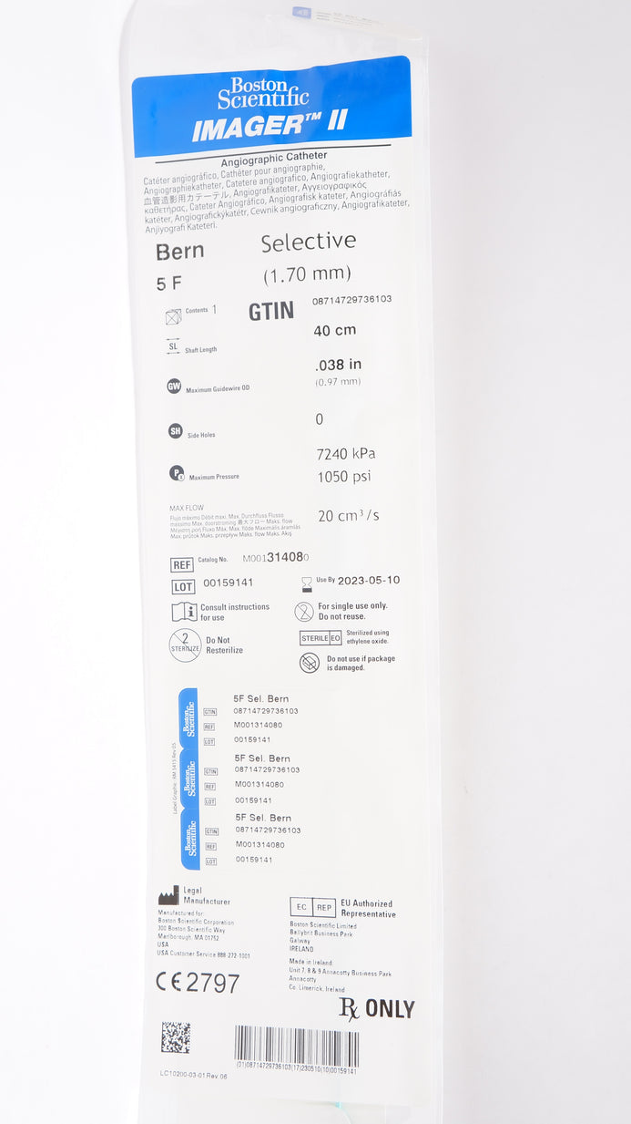 - Boston Scientific M001314080 Imager Angiographic Cath. 5 F x 40cm x .038inch (x)