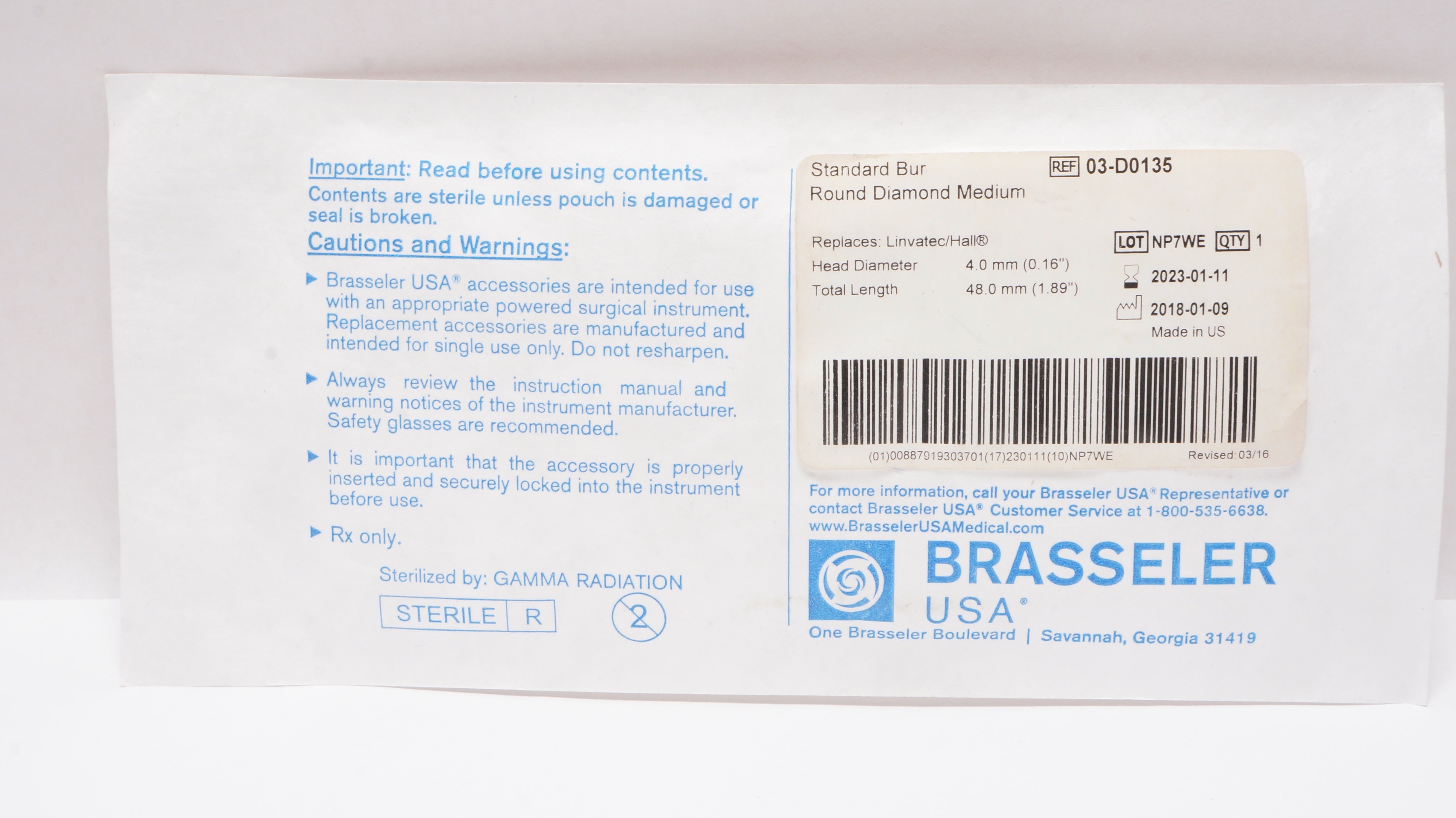- Brasseler 03-D0135 Standard Bur Round Diamond Medium 0.16inchx 1.89inch (x)