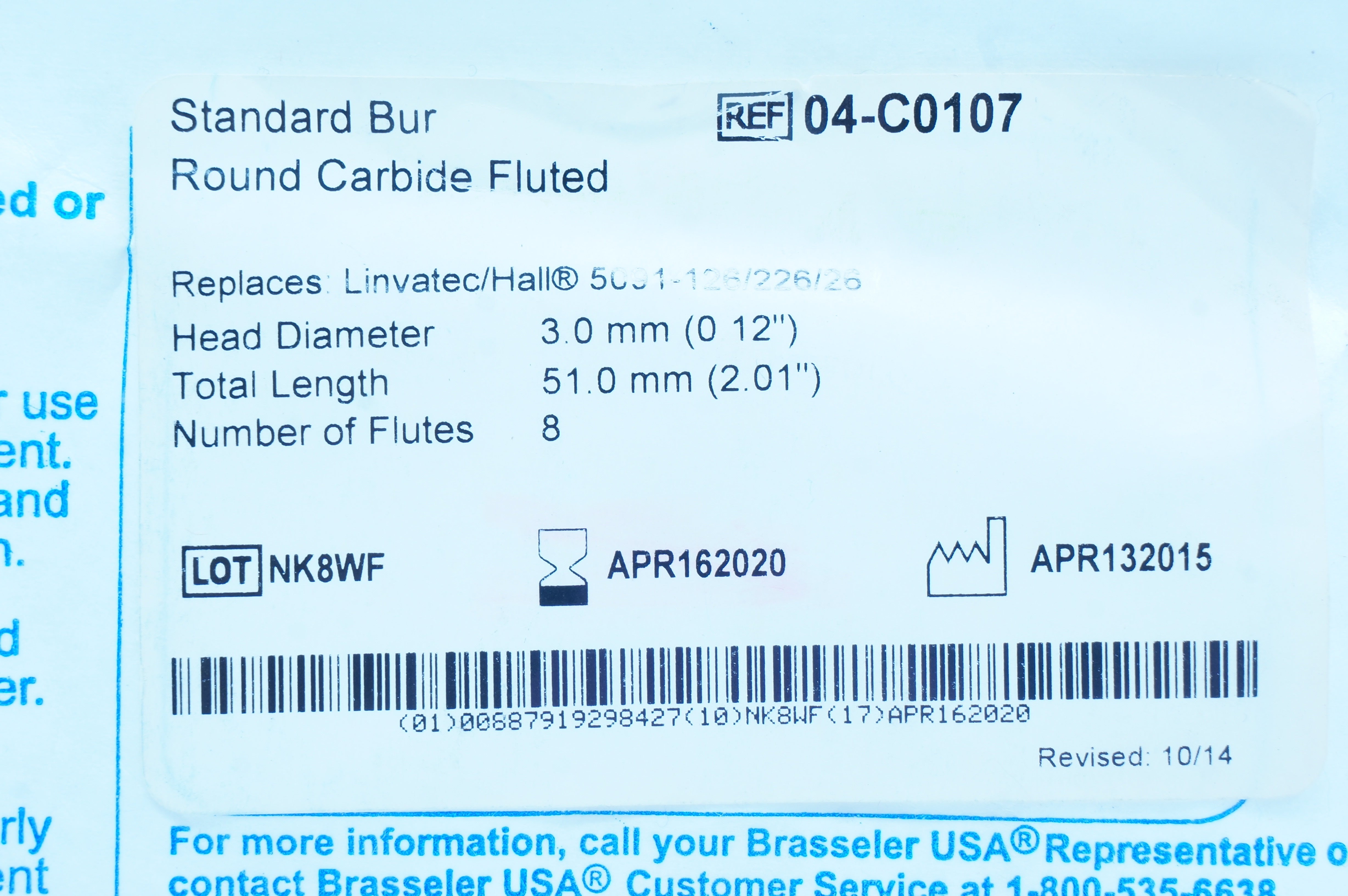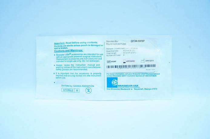 - Brasseler 04-C0107 Standard Bur Round Carbide Fluted 0.12 x 2.01 inch (x)