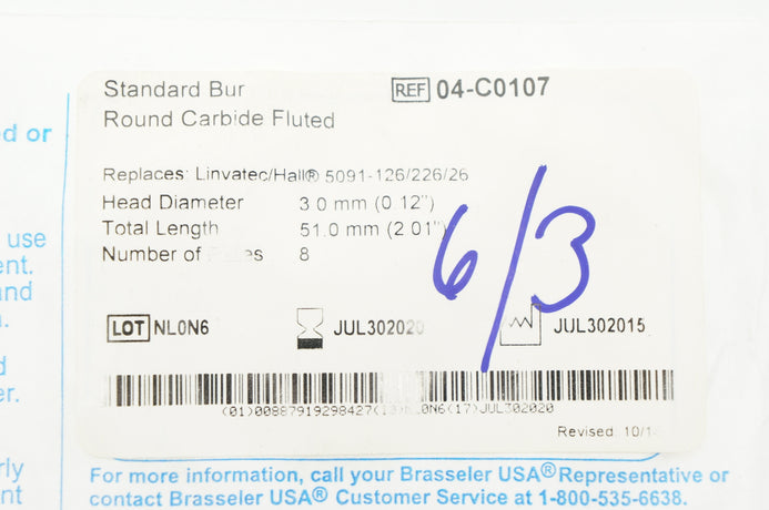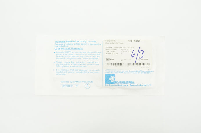 - Brasseler 04-C0107 Standard Bur Round Carbide Fluted 0.12inch x 2.01inch (x)