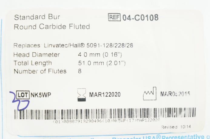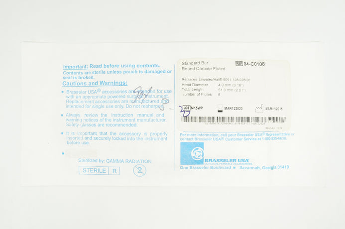 - Brasseler 04-C0108 Standard Bur Round Carbide Fluted 4.0 x 51.0mm x 8 (x)