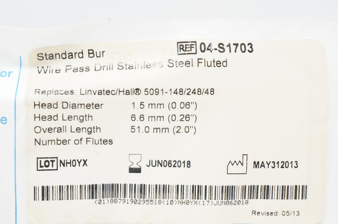 Brasseler 04-S1703 Standard Bur Wire Pass Drill Stainless Steel Fluted (x)