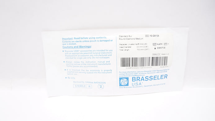 Brasseler 10-D0139 Standard Bur Round Diamond, Medium 0.08inch x 2.87inch
