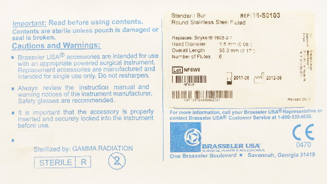 Brasseler 16-S0103 Standard Bur Round Stainless Steel Fluted