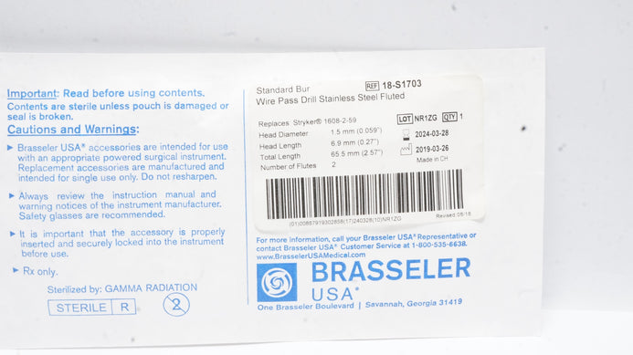 - Brasseler 18-S1703 Wire Pass Drill 0.059inch x 0.27inch x 2.57inch (x)