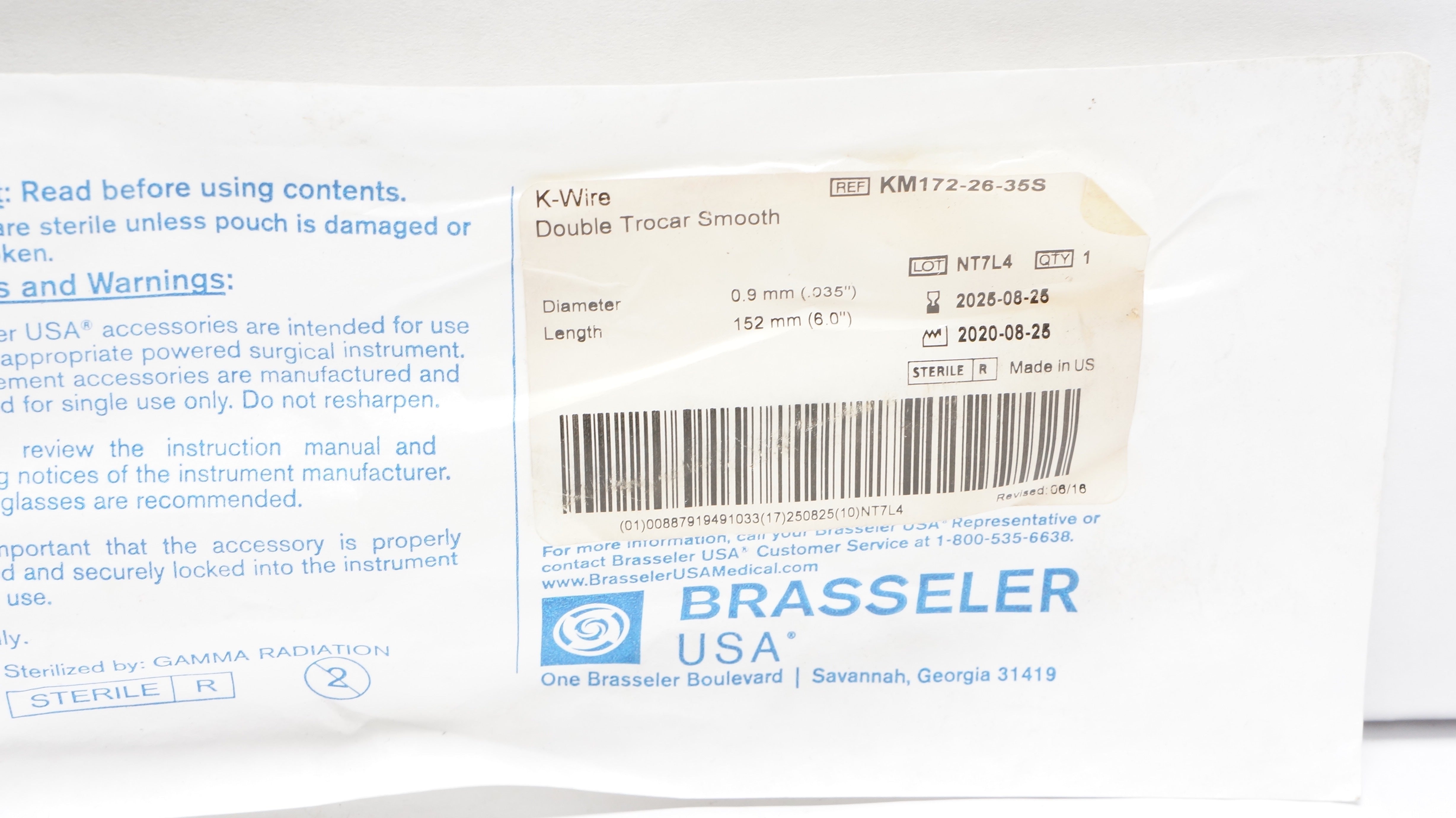 Brasseler KM172-26-35S K-Wire Double Trocar Smooth 0.035inch x 6.0inch (x)