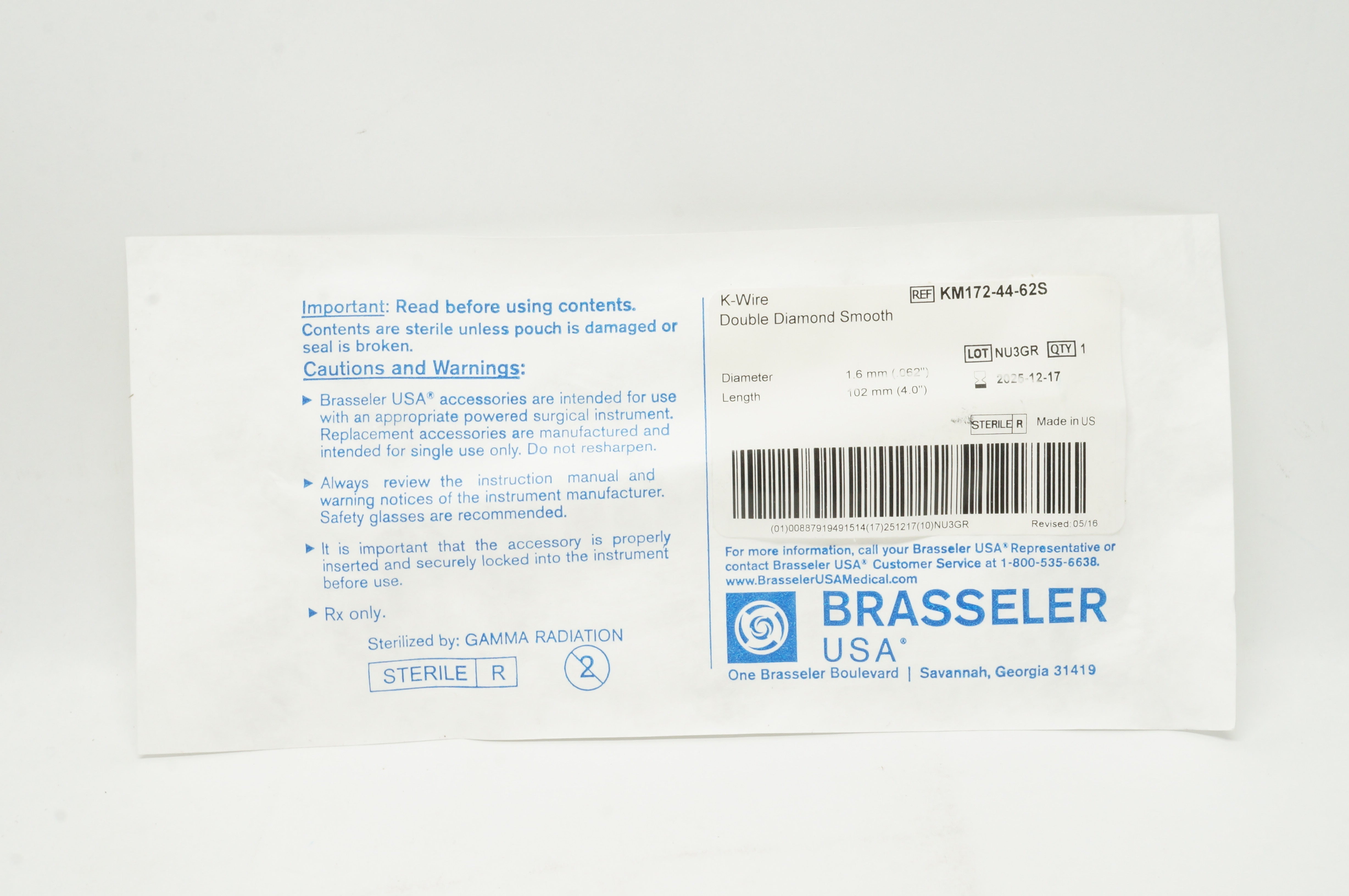 - Brasseler KM172-44-62S K-Wire Double Diamond Smooth