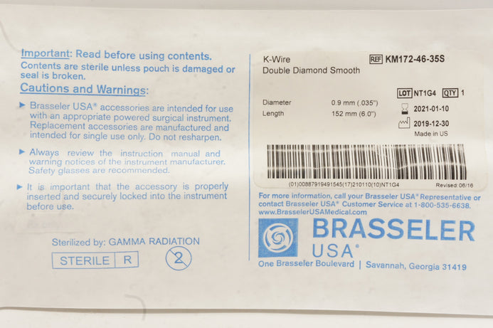 - Brasseler KM172-46-35S K-Wire Double Diamond Smooth (x)