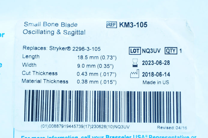 Brasseler KM3-105 Small Bone Blade Oscillating & Sagittal 0.73 x 0.35 x .017 x .015 inch