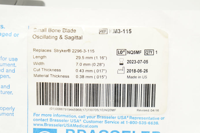 - Brasseler KM3-115 Small Bone Blade Oscillating & Sagittal 0.28inch x 1.16inch