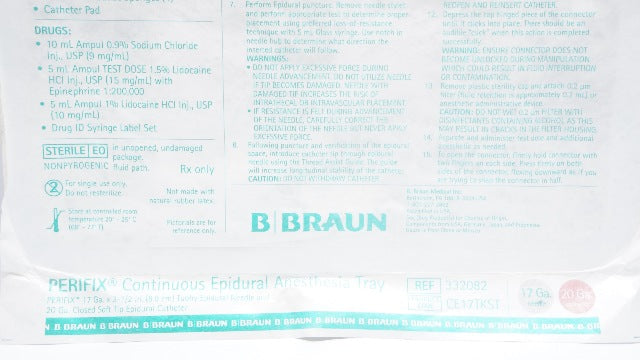 Braun 332082 PERIFIX Continuous Epidural Anesthesia Tray 17Ga x 3-1/2inch (x)